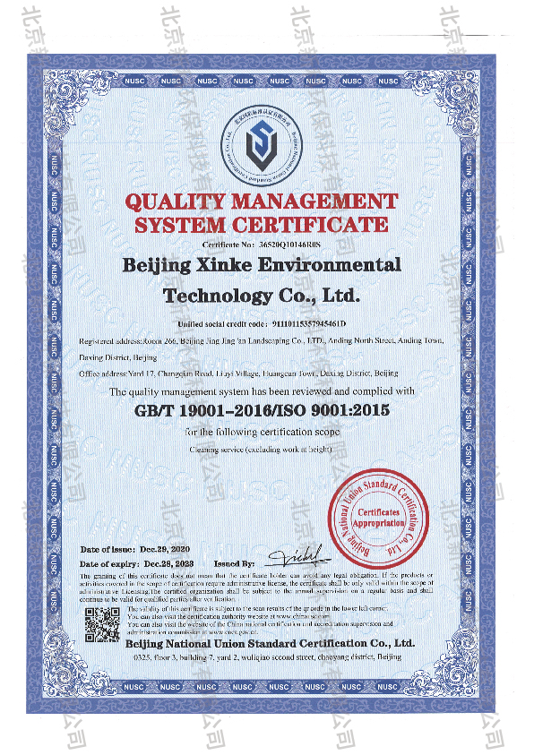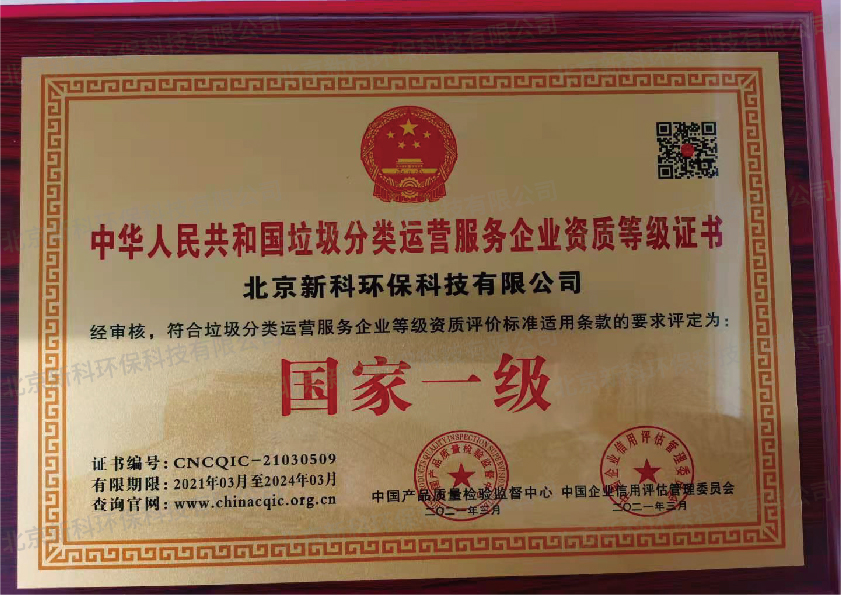 中華人民共和國(guó)垃圾分類運(yùn)營(yíng)服務(wù)企業(yè)資質(zhì)等級(jí)證書