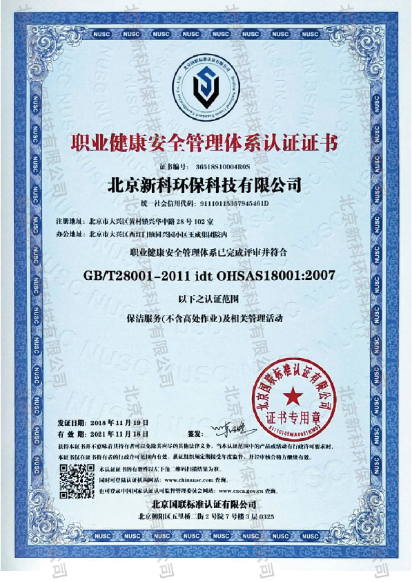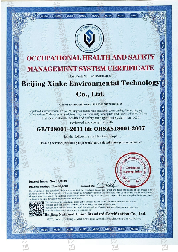 職業(yè)健康安全管理體系認(rèn)證證書(譯)